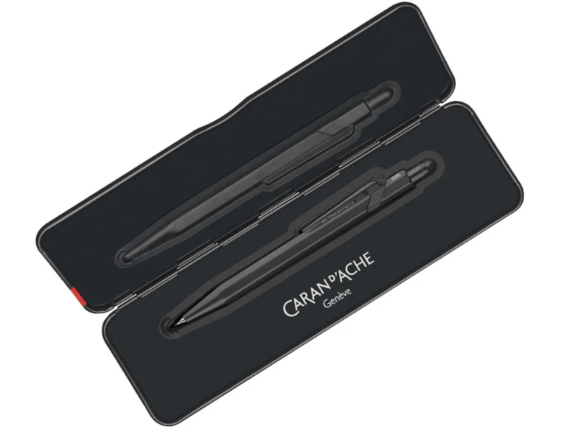 Styled to match the iconic Caran d’Ache 849 range, the 844 mechanical pencil is a modern writing classic. Manufactured from durable lightweight aluminium, the signature hexagonal barrel gives the pencil a streamlined silhouette and contemporary appeal. The Black Code is a vision in stealthy matt black, creating an striking and elegant look. Utilising a simple push button mechanism and fitted with 0.7mm leads, this pencil is sure to become your writing instrument of choice.
