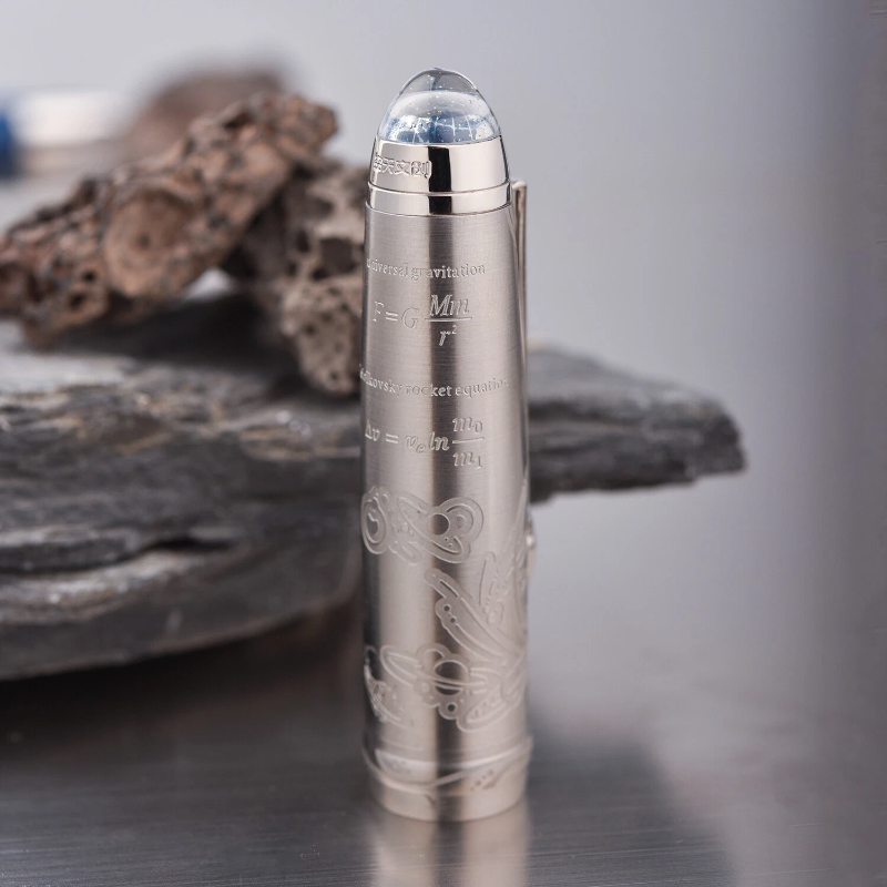 Elegant Design Inspired by Galaxy Exploration: Meticulously crafted with high-quality acrylic body and stainless steel cap, this fountain pen combines durability and elegance. The cap is engraved with rocket dynamics equations and a planetary galaxy pattern, symbolizing humanity's exploration of the cosmos.