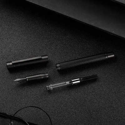 The Hongdian Forest Black Fountain Pen is a new writing instrument series from Hongdian, a chinese brand known for producing affordable yet high-quality fountain pens. This fresh, elegant, reliable fountain pen by Hongdian is a true marriage of the sophistication of finer days with the latest technology of modern times. Hand assembled and checked for flawless quality, it gives high precision and exceptional writing comfort for every occasion, coupled with a gorgeous design and sandblasted Black color. With this pen in your possession, clients, colleagues, and friends will know you for your taste, class, and sophistication.