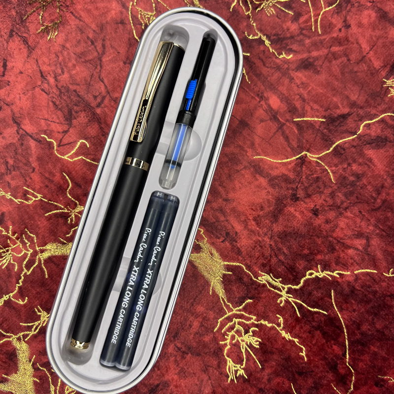 It comes with two blue ink cartridges and a converter, giving you the flexibility to use both cartridge and bottled ink. The stylish design with golden accents adds a luxurious touch, making it suitable for daily writing, professional use, or gifting.