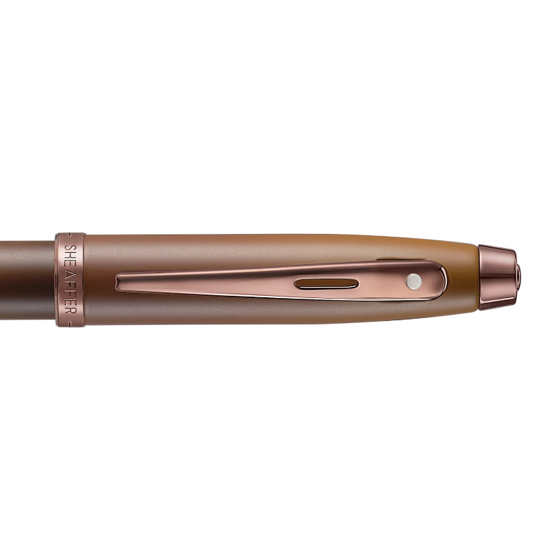 The Sheaffer 100 Series Coffee Edition, a distinguished writing instrument celebrated for its enduring elegance and superior craftsmanship. This beautiful pen features a rich dark coffee brown hue, accented with a refined cup and heart emblem on the cap. Painstakingly crafted to meet exceptional standards, it is the perfect choice for both professionals and aficionados who value the finer things in life.