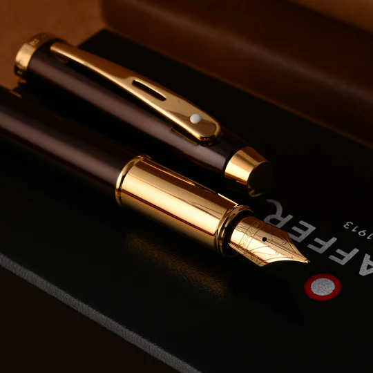 Coffee never looked this good. The glossy coffee brown lacquer gleams with a depth that begs to be touched, while shiny PVD gold-tone trim adds a touch of timeless luxury. This pen wasn't built for scribbles, it craves the creation of stories, dreams, and ideas that deserve a stage as exquisite as themselves.